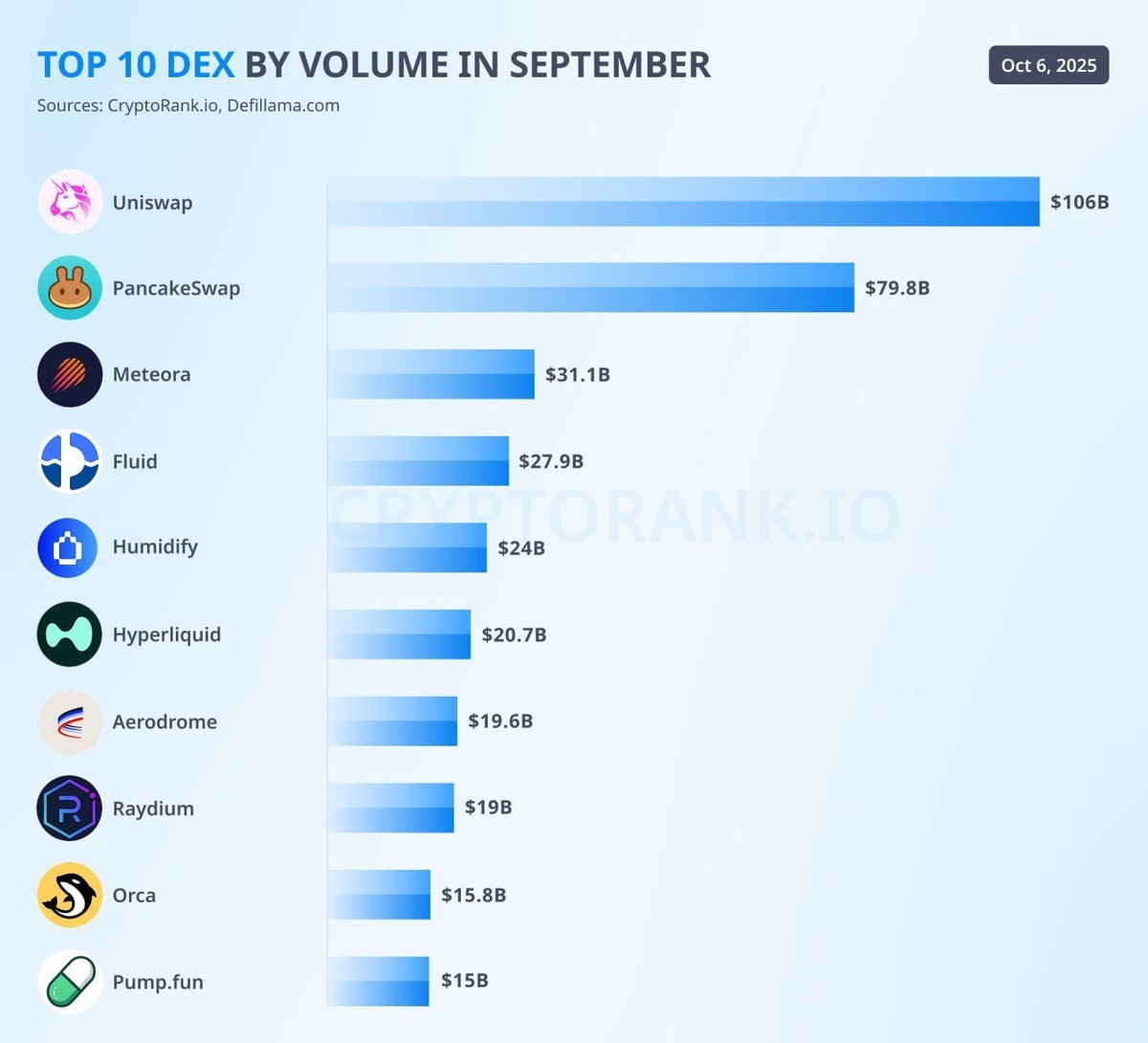 🔸Единственной DEX, достигшей в сентябре объема в $100 млрд, была Uniswap