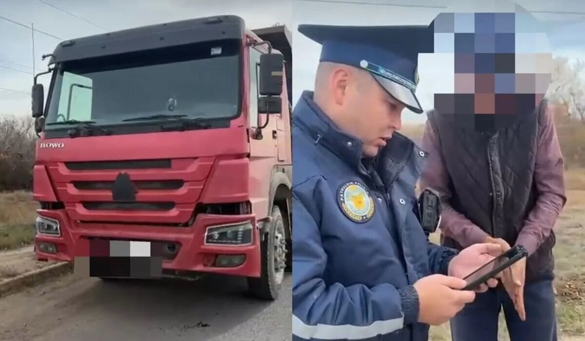 Водитель без прав ехал на грузовике с поддельными номерами в Акмолинской области (ВИДЕО)