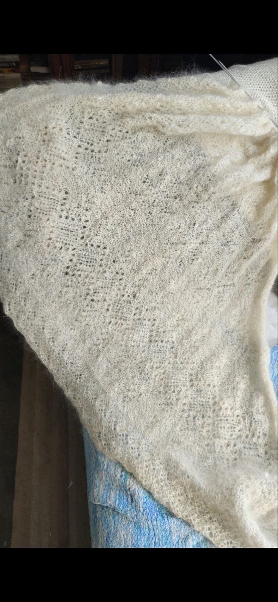Шаль почти готова, на спицах не очень понятно, но будет очень красиво, такой ещё ни разу не было нигде