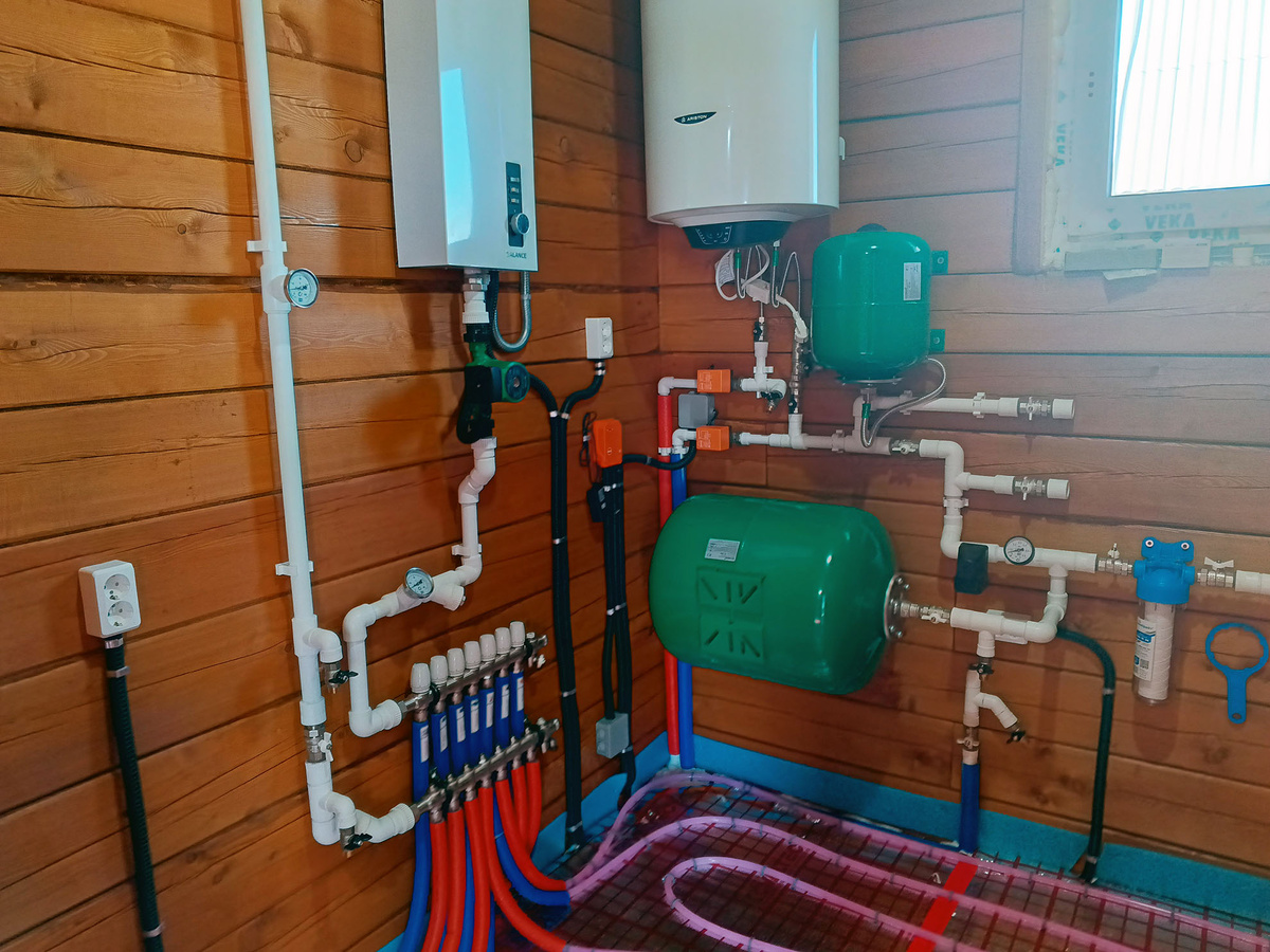 В посёлке Максимовщина (Иркутский район) мы выполнили полный комплекс работ по устройству системы отопления частного дома — от разводки контуров тёплого пола до установки насосно-коллекторного узла и автоматики. Дом выполнен из дерева, поэтому при монтаже применялись решения, обеспечивающие пожарную безопасность и герметичность соединений: После монтажа система прошла опрессовку и тестовый запуск. Тёплый водяной пол обеспечивает комфортное тепло во всех помещениях, работает тихо и эффективно.