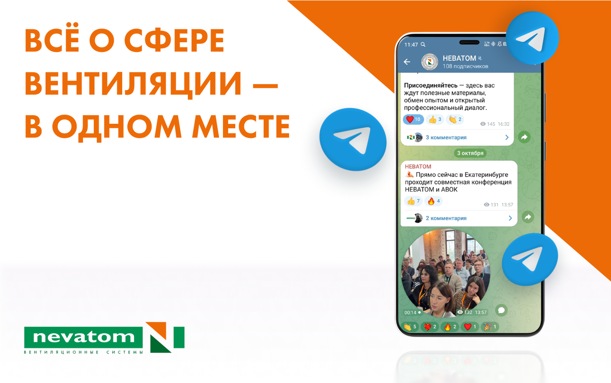 Инженеры, проектировщики и монтажники теперь могут общаться и обмениваться опытом на одной площадке — в официальном Telegram-канале компании НЕВАТОМ. Мы делимся практическими кейсами с объектов, рассказываем о новых технологиях и разбираем реальные инженерные задачи. Если вы работаете с вентиляцией, присоединяйтесь и развивайте отрасль вместе с нами: https://t.me/+3TgyPDvG4o5jMGMy
