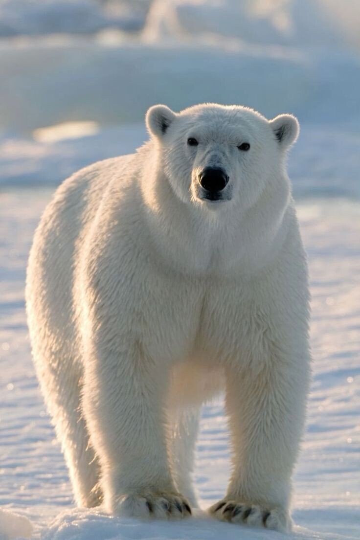 Белый медведь — непохожий на других хищник гигант, чья фигура кажется созданной из чистого льда и силы воды. Его силуэт растянут и мощен: длинное тело, массивная шея, широкий череп и лапы, словно пластины из ледяной брони. Шерсть, кажущаяся белоснежной, на самом деле играет оттенками кремового и серого: под длинной защитной шерстью прячется плотный слой подшёрстка, а в глубине черная кожа, поглощающая тепло солнца и согревающая тело, когда зима наступает своими ледяными пальцами.
