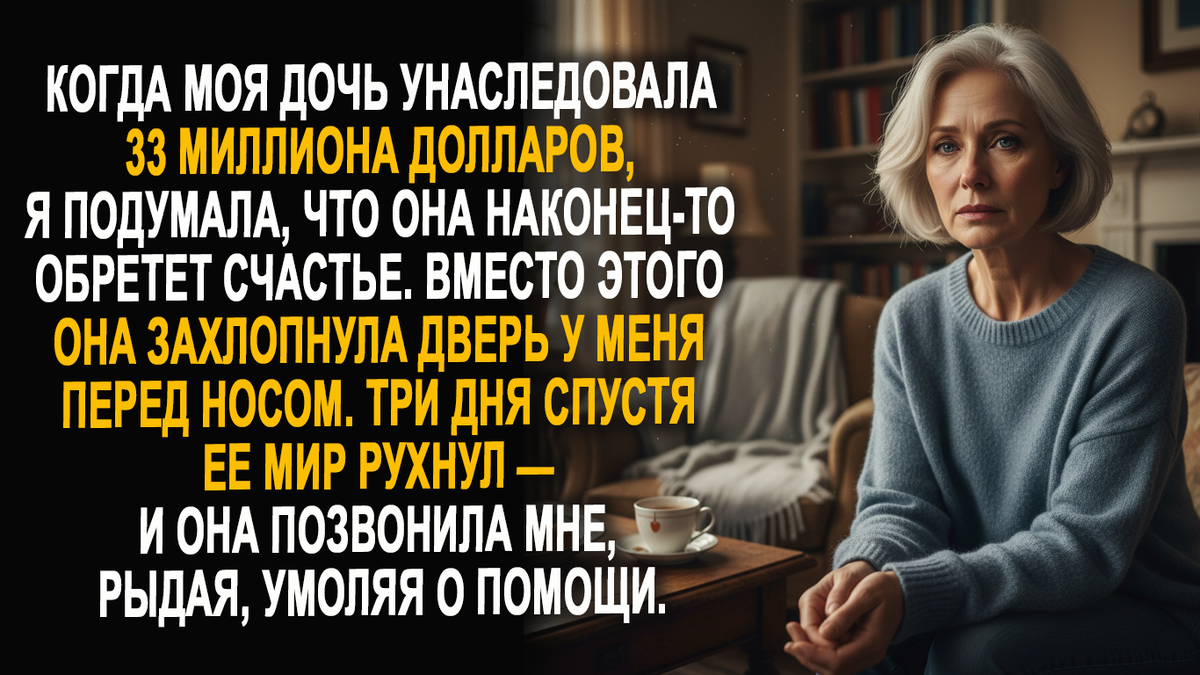Когда моя дочь унаследовала 33 миллиона долларов, я подумала, что она наконец-то обретет счастье. Вместо этого она захлопнула дверь у меня перед носом. Три дня спустя ее мир рухнул — и она позвонила мне, рыдая, умоляя о помощи. Это история не о деньгах. Речь идет о гордости, любви и о том, как боль может спасти нас.