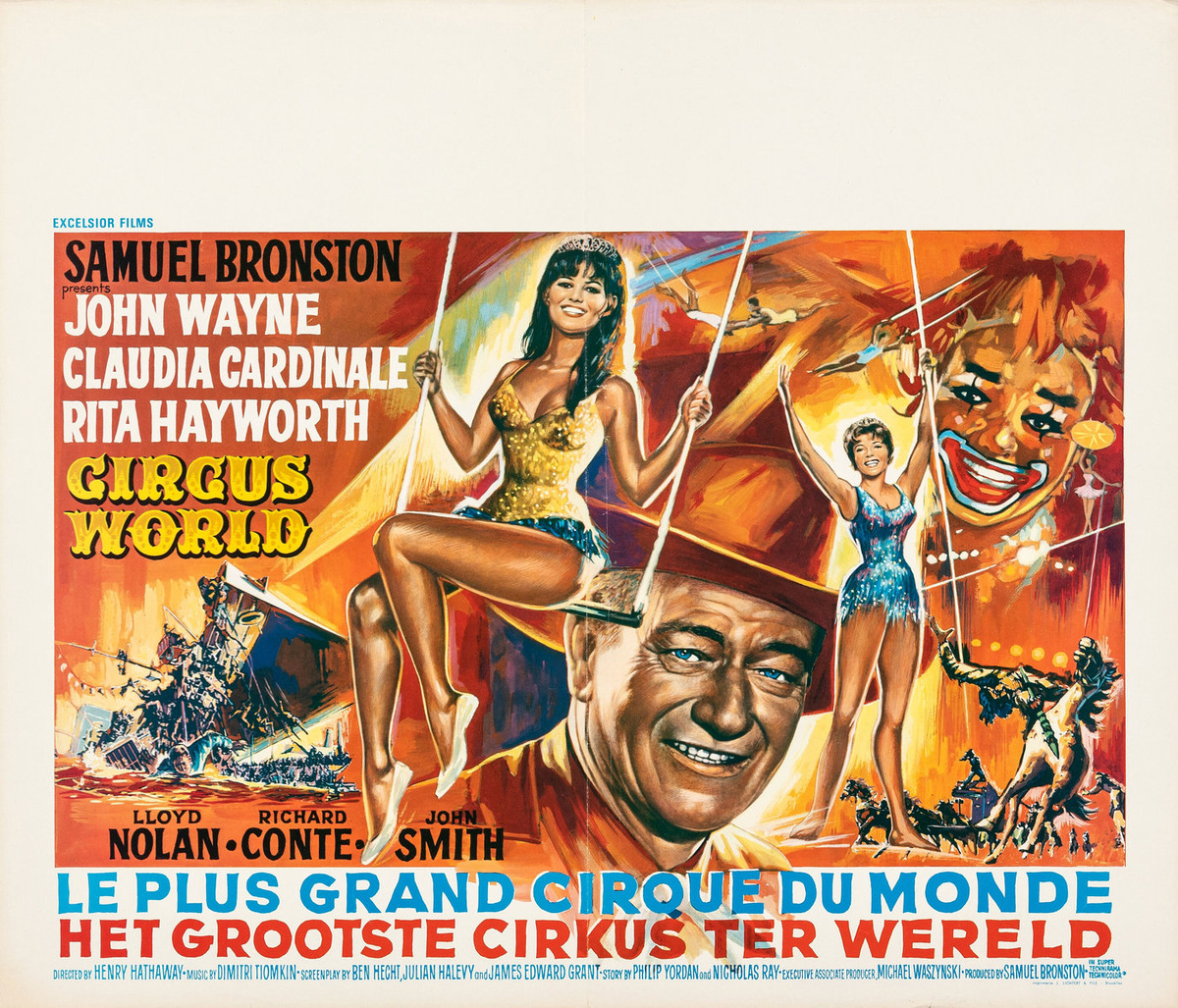 Джон Уэйн и его коллектив нагородили в этом фильме столько всего, что смотришь, буквально, рот разинув. Почему же Джон Уэйн, если режиссёр не он? А потому, что он своим авторитетом мог нанимать и увольнять режиссёров. Изначально в постановщики "Мира цирка" рядили Фрэнка Капру, но там что-то не сложилось и в итоге мы имеем то, что имеем. У Хэтэуэя получилось всё более агрессивно-брутально - вестерн одним словом. У Капры было бы всё иначе. На главную женскую роль выписали восходящую звезду Клаудию Кардинале. В прочих ролях звезды Голливуда разного калибра. Итак кино... Конец XIX века, Мэтт Мастерс (Джон Уэйн), колесит по Штатам показывая ошеломительное представление. Ошеломительное - даже по современным меркам. По арене носится дилижанс, на него нападают индейцы, перестрелки, кони, люди. Там-же в ковбойской шляпе и с винчестером приёмная дочь Мастерса Тони (Кардинале), в общем дым коромыслом. Причём всё это под бравурную музыку из фордовского "Дилижанса" - от Уэйна привет самому се