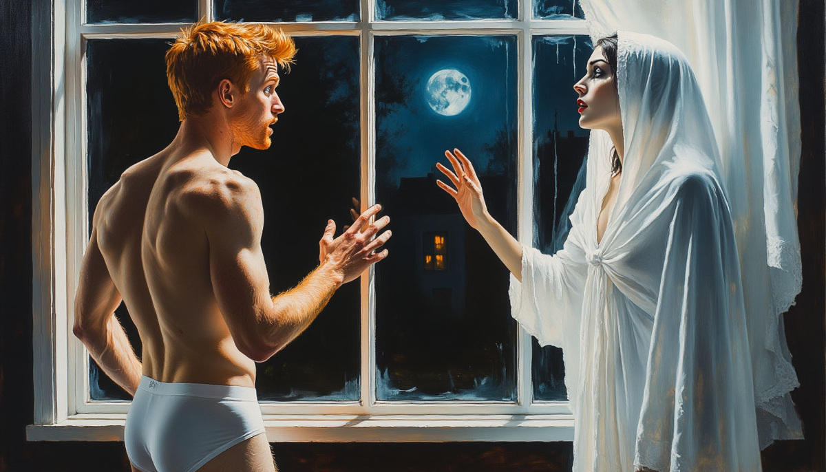 Алексей проснулся от странного ощущения. Казалось, что кто-то наблюдает за ним из темноты. Он лежал неподвижно, прямо физически ощущая на себе взгляд и чутко прислушиваясь к ночным звукам, но в квартире царила абсолютная тишина. Только тиканье старых часов на стене нарушало эту гнетущую тишину. Внезапно он услышал шорох. Тихий, едва уловимый звук доносился откуда-то справа. Алексей медленно повернулся в ту сторону и замер. Его взгляд упал на окно. Сквозь стекло что-то просачивалось. Невидимая сила искажала воздух, создавая причудливые узоры. Алексей затаил дыхание, наблюдая, как из темноты ночи формируется силуэт. Это была женщина в белом балахоне, но её фигура словно состояла из призрачного тумана. Она двигалась плавно, почти грациозно, проходя сквозь стекло, будто оно было иллюзией. Её одеяния шелестели, касаясь несуществующих поверхностей. Алексей почувствовал, как стылый холод пробирает его до костей. Женщина медленно повернулась к нему. Её лицо оставалось скрытым в тени капюшона,