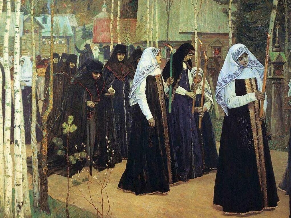 Как оно - за высокими кирпичными стенами монастырскими, воспитанницы могли только гадать, но в храме пока не топили и на заутрене пар, вырываясь из многих ртов, клубами вился над головами, покрытыми черными и белыми платками, не торопился рассеиваться или подняться под купол. Так и висел над головами молящихся сизым маревом. Черницы - монашки, под белыми покрывалами волосы прячут послушницы, так, что ни волоска не выбьется.