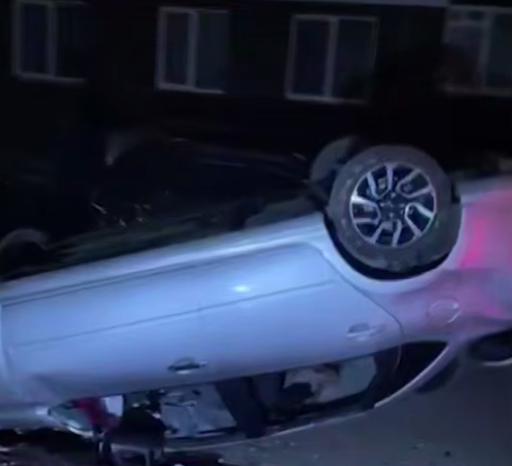 В Мариинском автомобиль врезался в четыре припаркованных машины и перевернулся.