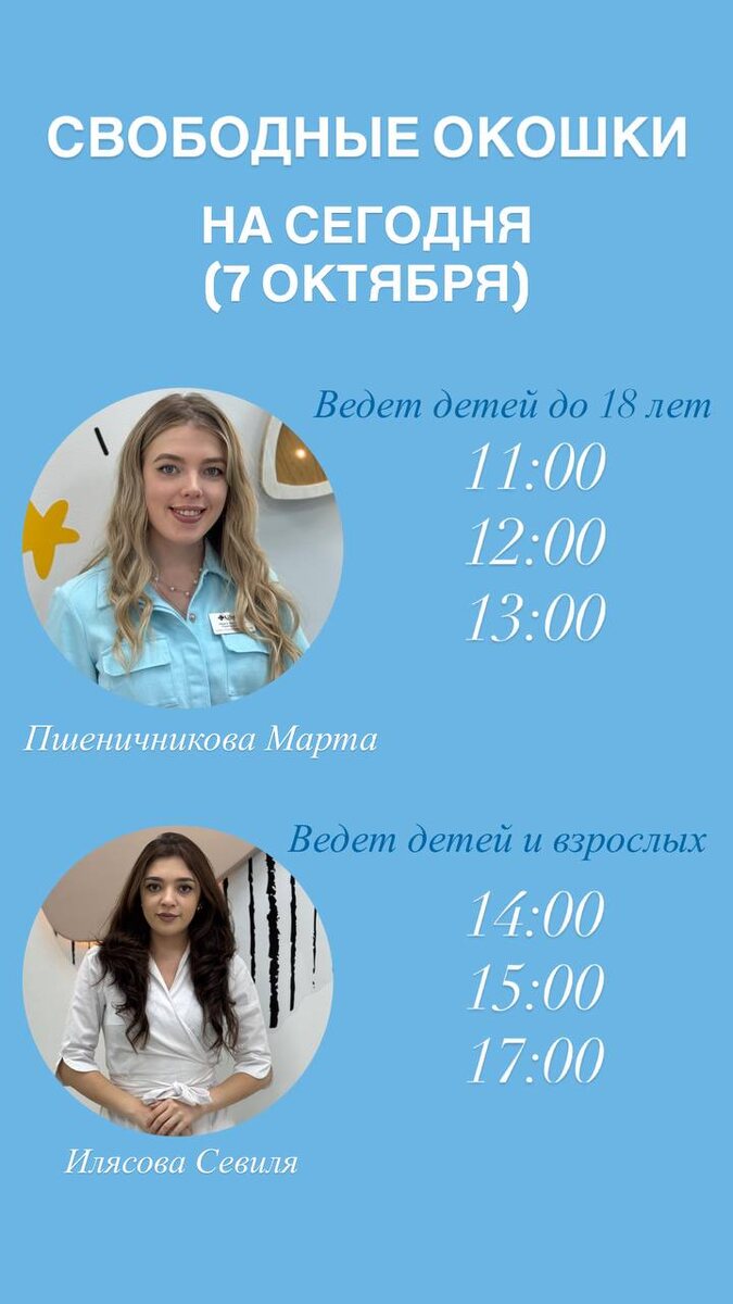Свободные окошки на сегодня к нашим врачам-стоматологам 🩵