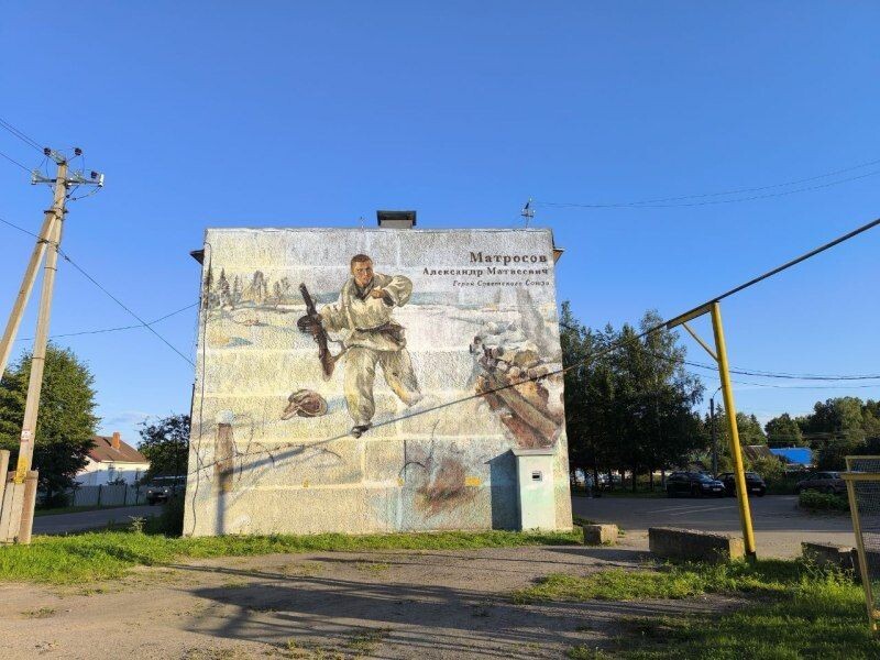 ✨ В поселке Локня появился мурал с изображением подвига Александра Матросова. В деревне Филатова Гора отремонтирован обелиск, а в Стругах Красных восстановлен памятник танку ИС-3.