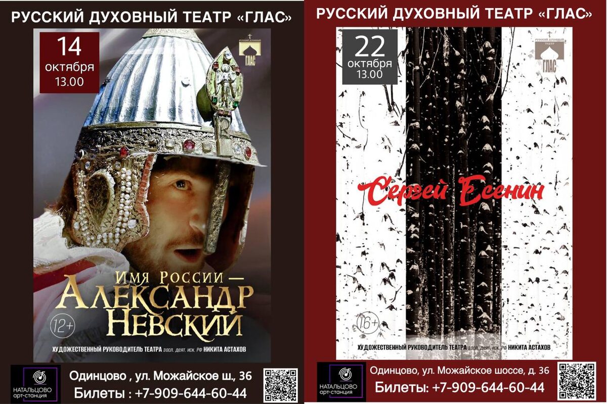 Эта осень щедра на театральные премьеры! Сразу 2 потрясающих ярких спектакля Русского духовного театра «Глас» на сцене арт-станции НАТАЛЬЦОВО в октябре!