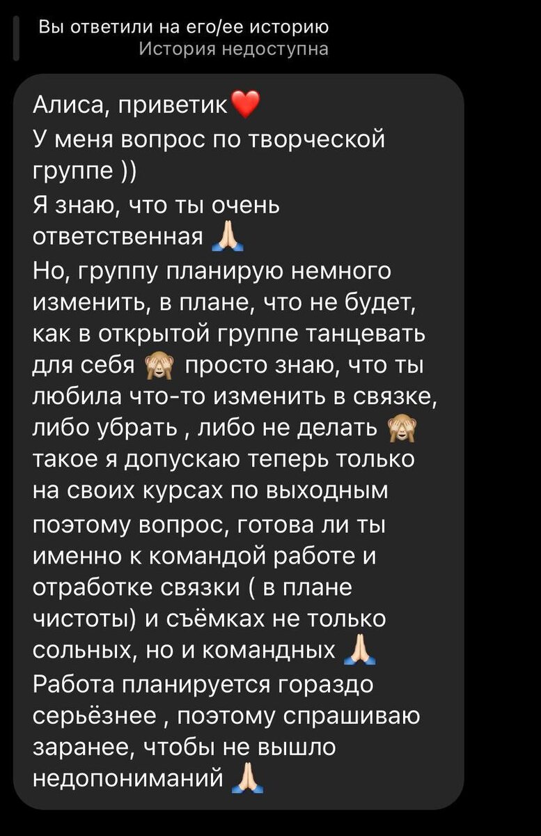 Потом тренер решила переформатировать группу в командную и я получила такой текст .