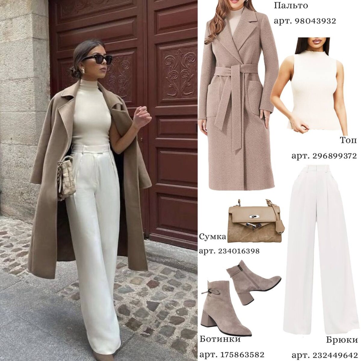 Бежевый — это не скука, если играть на оттенках и фактурах. Молочный топ, пальто цвета латте и светлые брюки создают мягкий, спокойный образ. Я люблю добавлять объёмный шарф крупной вязки или сумку с чёткой формой — они делают look продуманным. Такой total beige подойдёт и для офиса, и для прогулки в парке.