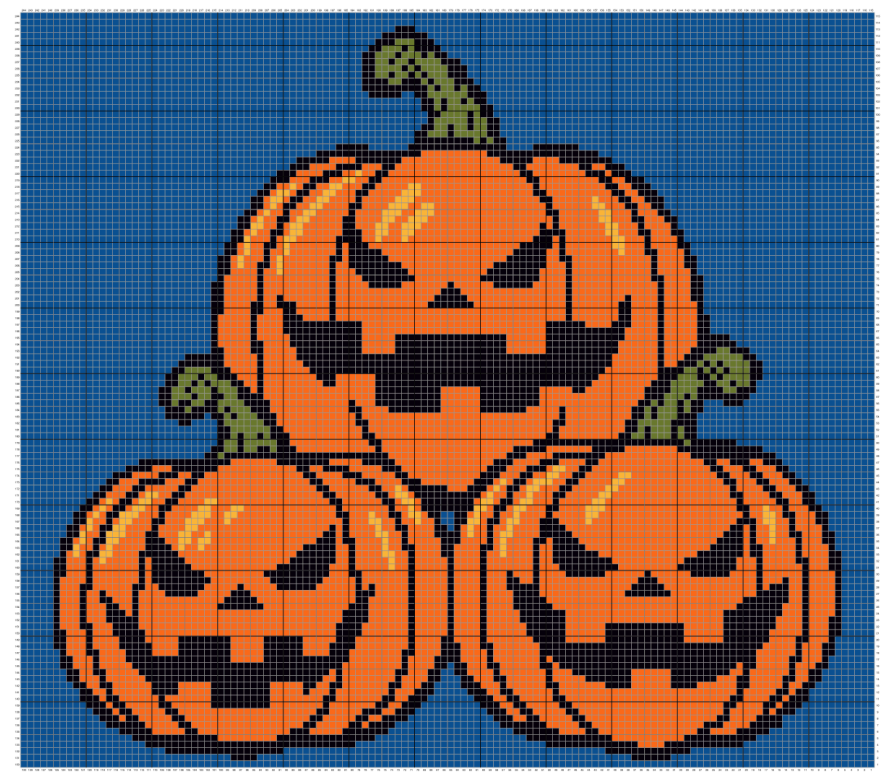 Используйте оранжевую и зеленую пряжу для создания тыкв. Добавьте черные элементы для глаз и рта. Такой плед станет ярким акцентом в интерьере. 2. Плед с летучими мышами.