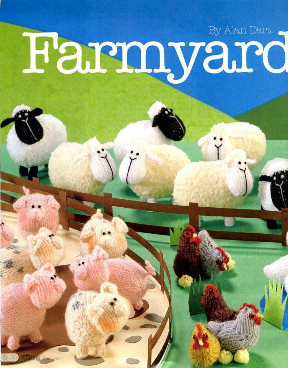 Автор Алан Дарт Овца Особые сокращения ТЕЛО (1 ДЕТАЛЬ) Наберите 14 п. на спицы 3 мм пряжей Pure White или Cream Snowflake для переднего края и продолжайте вязать лицевой гладью. 1-й ряд прибавок (прибавка 1 п., 5 лиц. п., прибавка 1 п.) дважды [18 п.] Следующий ряд: изнаночная гладь. 2-й ряд прибавок (прибавка 1 п.) дважды, 5 лиц. п. (прибавка 1 п.) четыре раза, 5 лиц. п. (прибавка 1 п.) дважды [26 п.] Следующий ряд: изнаночная гладь. 3-й ряд прибавок (прибавка 1 п., 1 л. п.) дважды, 5 лиц. п. (прибавка 1 п., 1 л. п.) четыре раза, 5 лиц. п. (прибавка 1 п., 1 л. п.) дважды [34 п.] Вяжите лицевой гладью 17 рядов. Формирование спинки 1-й ряд убавлений (1 лиц. п., 1 п.) дважды, лиц. п., (1 п., 1 п.) четыре раза, лиц. п., (2 лиц. п. вместе, 1 л. п.) дважды. [26 п.] Следующий ряд: изнаночная петля. 2-й ряд убавки (катог) дважды, 5 лиц. (катог) четыре раза, 5 лиц. (катог) дважды. [18 п.] Следующий ряд: изнаночная петля. 3-й ряд убавки (2 лиц. вместе, лиц., катог) дважды. [14 п.] Следующий ря