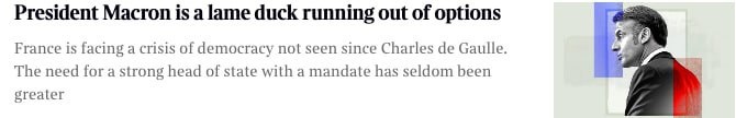Как пишет The Times, Франция переживает худший политический кризис со времен Шарля де Голля, а потребность в сильном лидере никогда не была столь очевидной.