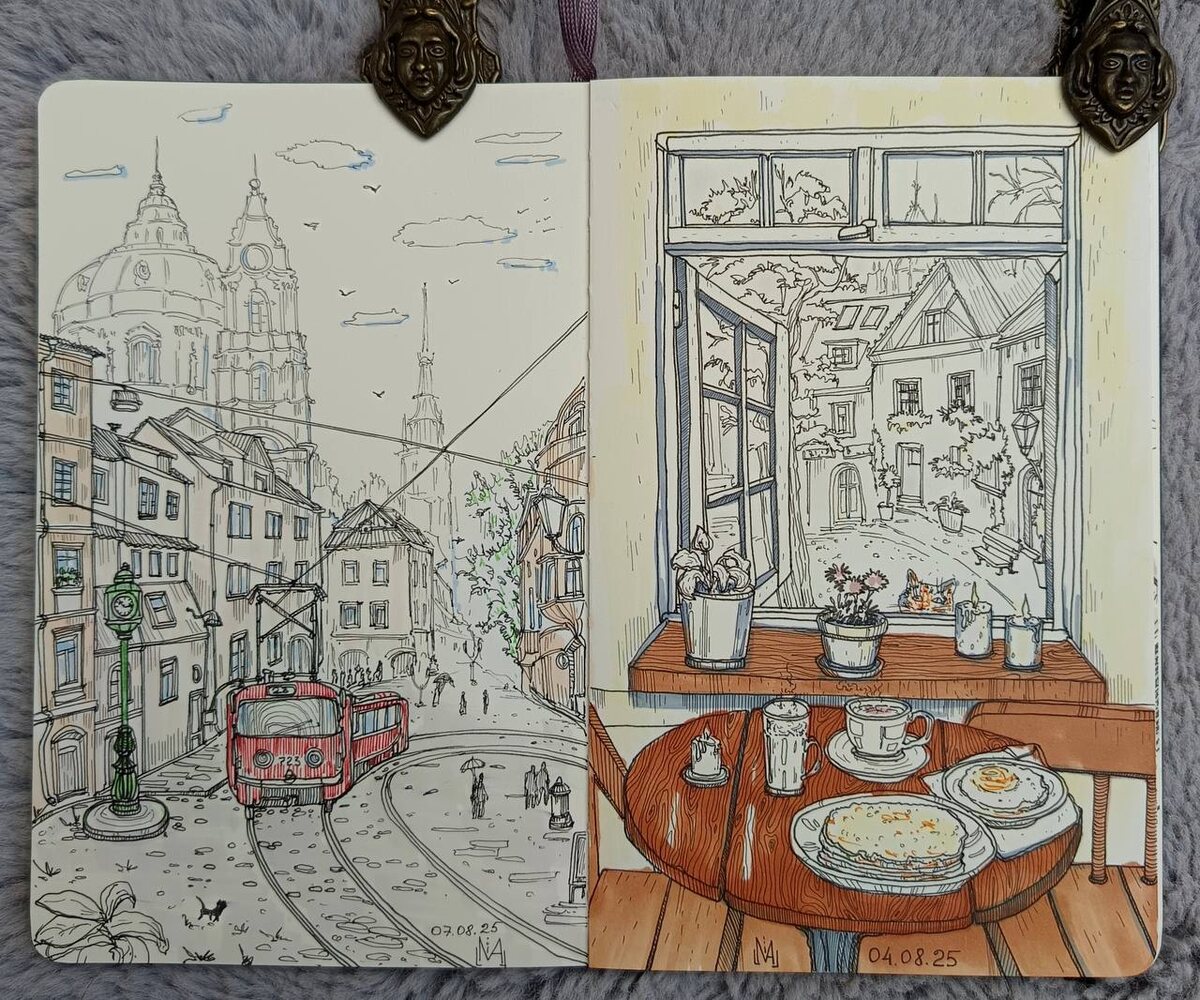 На курсе «Городской скетчинг» ученики учатся видеть красоту в простом. В каждом рисунке — своя история: знакомая панелька, утро за чашкой кофе, тихая улица с трамваем или солнечный двор. Каждая работа — это момент внимания, терпения и любви к деталям. Мы рисуем линии, но на самом деле учимся замечать жизнь вокруг — в окнах, тенях, отражениях и текстурах домов. С каждым штрихом города становятся ближе, а повседневность — чуть теплее. 💛 Дарим всем ученикам скидку 20% на любой курс школы. Промокод: ОСЕНЬ — действителен 2 дня!
