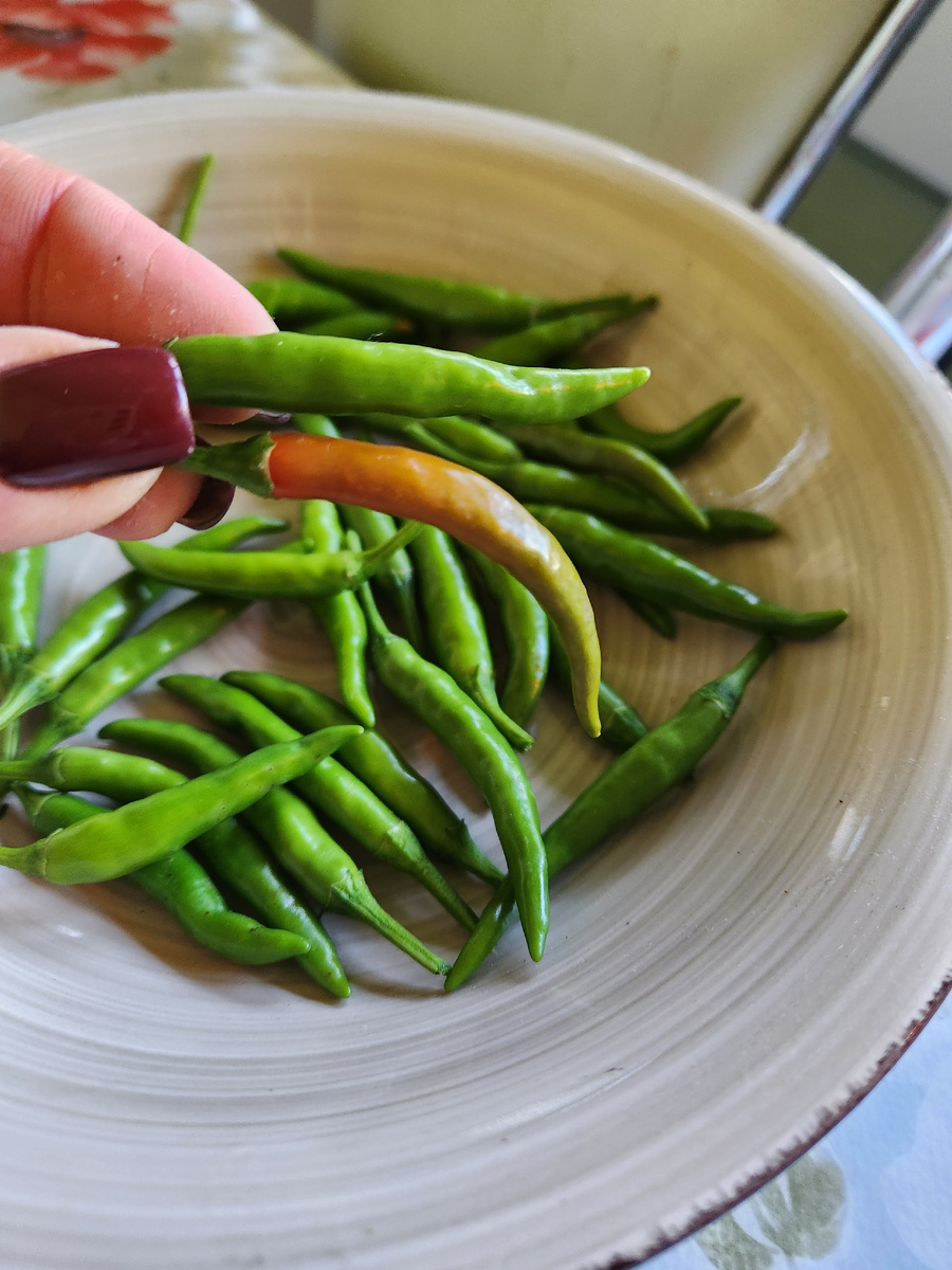 Добрый день, мои дорогие читатели. Сегодня обещанный еще весной при посадке отчёт о попытке выращивания тайского перца из семян сухого перца, купленного для заготовок. Перец я посадила 20 февраля, посадила пророщенными семенами в отдельные горшочки. Перевалка в литровые горшки в начале апреля. Высадка в грунт была сделана после того, как растаял майский снег и температура повысилась днем до 15 градусов. Здесь была первая ошибка, через четыре дня температура днем стала 5-7 С⁰, ночью 3 градуса. Равно через неделю после похолодания перцы массово сбросили листья, в теплице появился септориоз. Часть сладних перцев я заменила, а тайских у меня было только три штуки, замены не было. Выжили два, достаточно быстро обросли листвой. Куст тайского перца не похож ни на сладкий ни на острый по форме. Стволы вытянутые, прижатые друг к другу. Цветы мелкие, смотрятся чахлыми. Но с июля стал стабильно завязывать плоды, которые растут вверх. К сожалению, на вызревание требуется практически дв