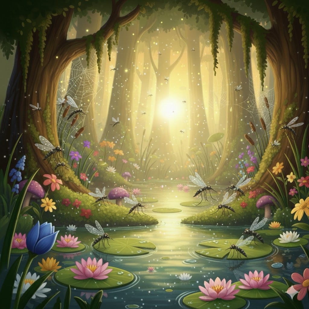 — Да, и пахнет свежестью, как после сна, — ответила Улитка Скольз-Скольз, поднимая рожки к солнцу. И вдруг над болотом появилось нечто удивительное — широкая, переливчатая дуга, тянущаяся от берега до берега. — Смотри! — вскрикнул Прыг-Прыг. — Река в небе! Или мост из света!