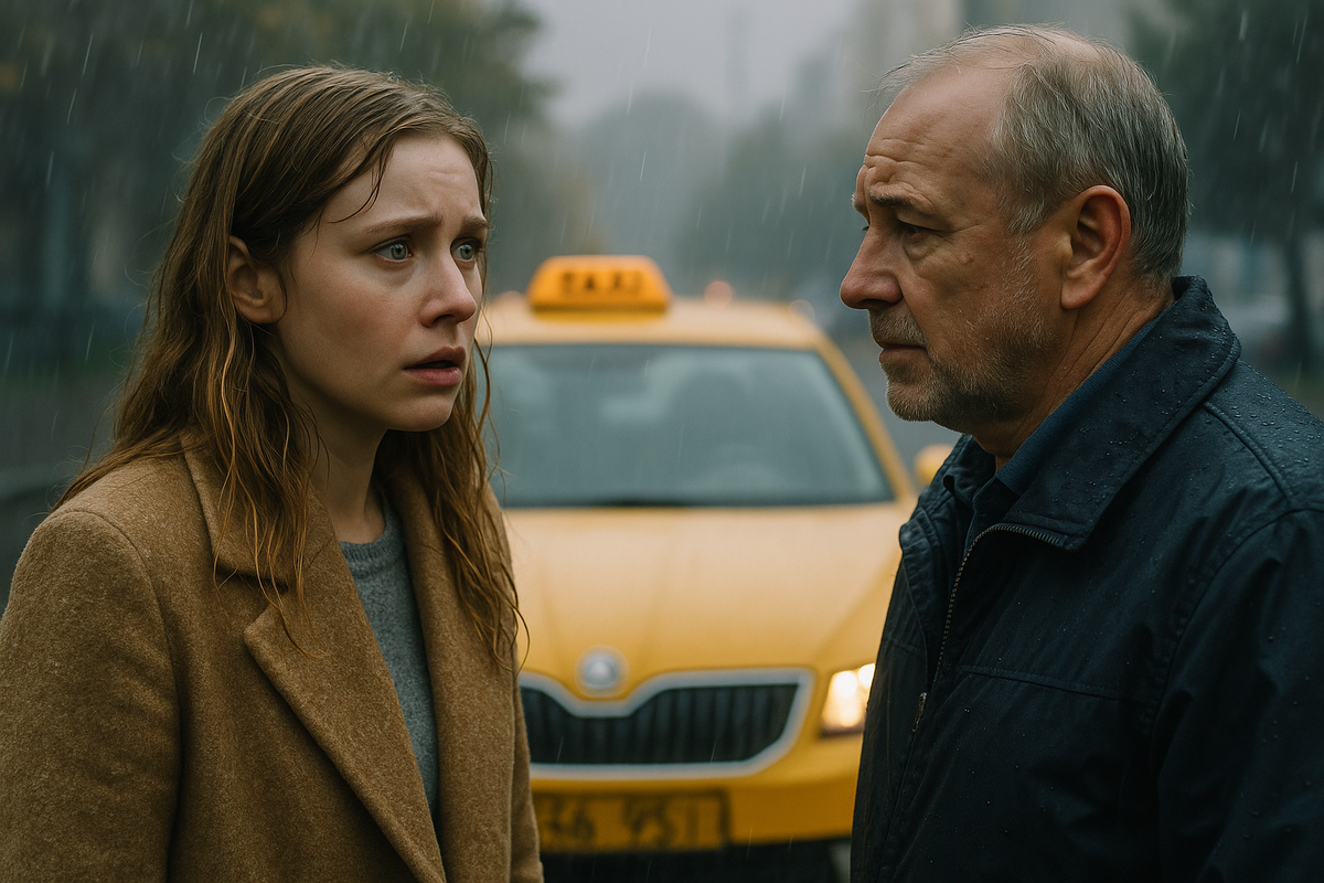 Она выскочила из машины прямо под дождь. Холодные капли падали на лицо, смешиваясь со слезами, которые она даже не заметила. Таксист тоже вышел, но остался стоять у машины, не приближаясь, давая ей пространство.