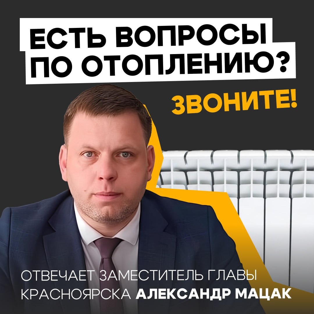 ❗️Завтра, 8 октября, первый заместитель главы Красноярска Александр Мацак проведет прямую линию по вопросам теплоснабжения