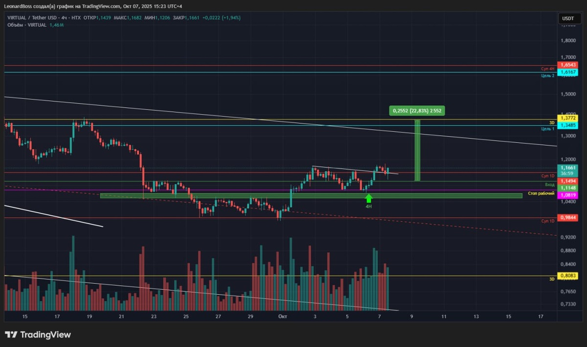 #VIRTUAL #TOKEN 🔼🔼🔼 ⚠️Маринуют нас мощно, друзья!! Чекайте доминацию BTC = она сейчас в ключевой зоне, которую я показывал утром в обзоре. Вот вот прорвет!!! P.s. присмотритесь к данным активам на среднесрок, оба графика сформированы для движения вверх, главное, что дед мощно не чудил!!)