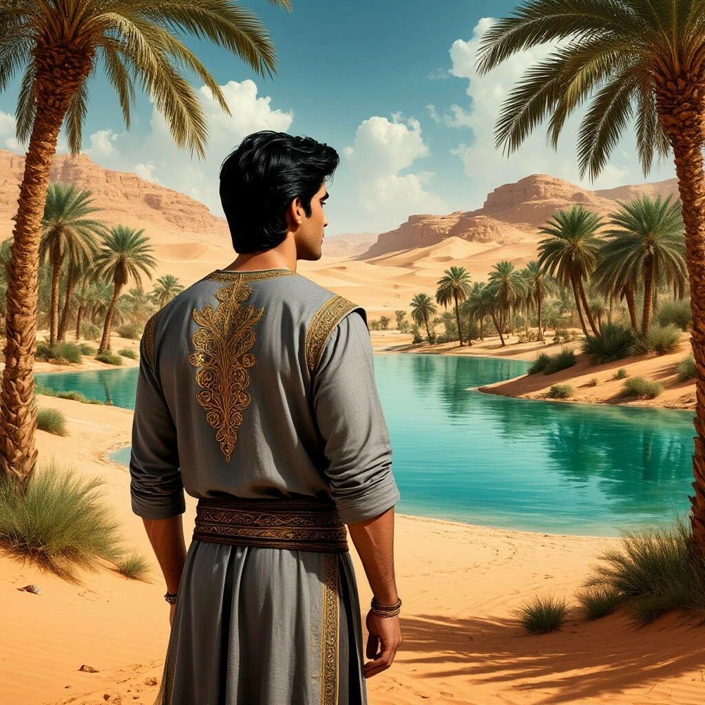 По мере приближения Фатих отчётливо видел пальмы, склонившиеся над сверкающим водоёмом, и даже слышал шум воды. Усталость как рукой сняло. Внутри росла надежда, но и страх до конца его не отпускал, пока наконец перед ним во всей красе не раскинулся оазис - райский уголок посреди безжалостной пустыни. Зелень, прохлада, журчание воды... Это было настолько прекрасно, что казалось нереальным.