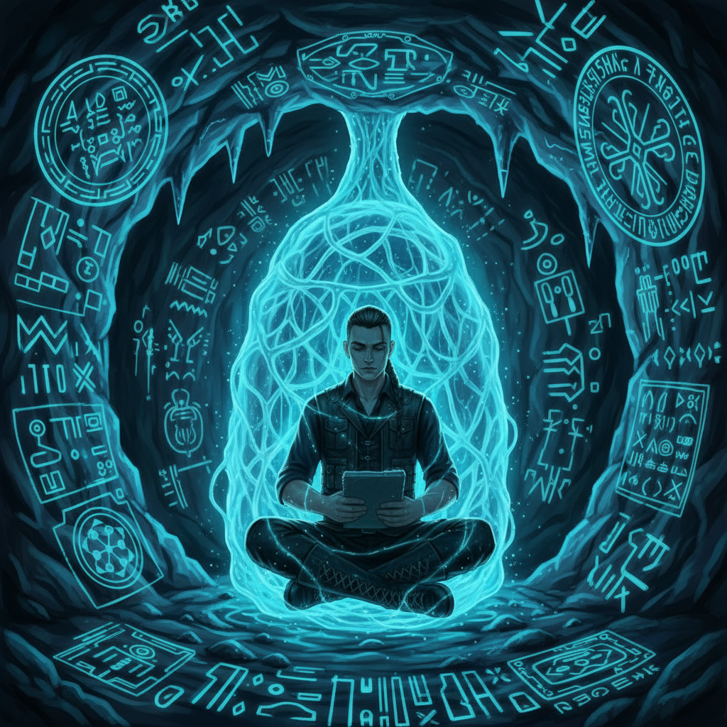 Первое время они шли по узкому коридору, стены и потолок которого мягко светились вкраплениями кристаллов. Иногда на каменных поверхностях проступали древние рисунки или надписи. Путники всякий раз останавливались, пытаясь разгадать их смысл, но тщетно — знаки были незнакомы, а изображения слишком стёрты временем.
