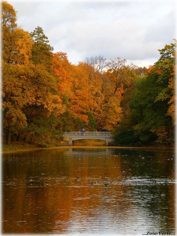 Осень на Елагином острове Пока не настала стужа, Залив не стянуло льдом, Рисую цветные лужи На острове золотом. Пустующие качели, Усыпанные листвой, Понурые ветви ели Над сморщенною травой, Дымящиеся закаты, Рябой опустелый пруд — Над ним облака-агаты Последние слёзы льют. Плывущий в аллеях вечер, Туманные фонари, Кустами шуршащий ветер, Рябиновый тюль зари. Вздыхаю, рисуя осень, О беге текучих дней. А сумрак в узорах сосен Становится всё темней. ___ Зоя Верт ___ #стихи #поэзия #лирика #творчество #зоя_верт #петербуг #питер #осень #елагин_остров ___ Приглашаю подписаться на мой Telegram-канал: https://dzen.ru/id/608d1d575730dc50c0797f9a