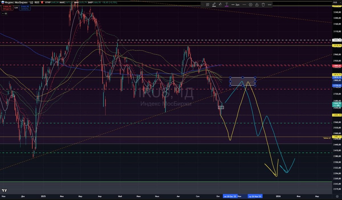 Мои краткосрочные ожидания по рынку. Желтым - это как хотел бы, но есть признаки, что пока не хотят обновлять лой именно сейчас. Голубым - это тот же желтый, только с более поздним обновлением лоя. Глобально в этом квартале, считаю что можем даже по 2800 уже не увидеть индекс, не говоря уже о 2900. Работаю от лонга. Среднесрочный шорт планирую открывать в том белом прямоугольничке. Картинка без сжатия в комментариях