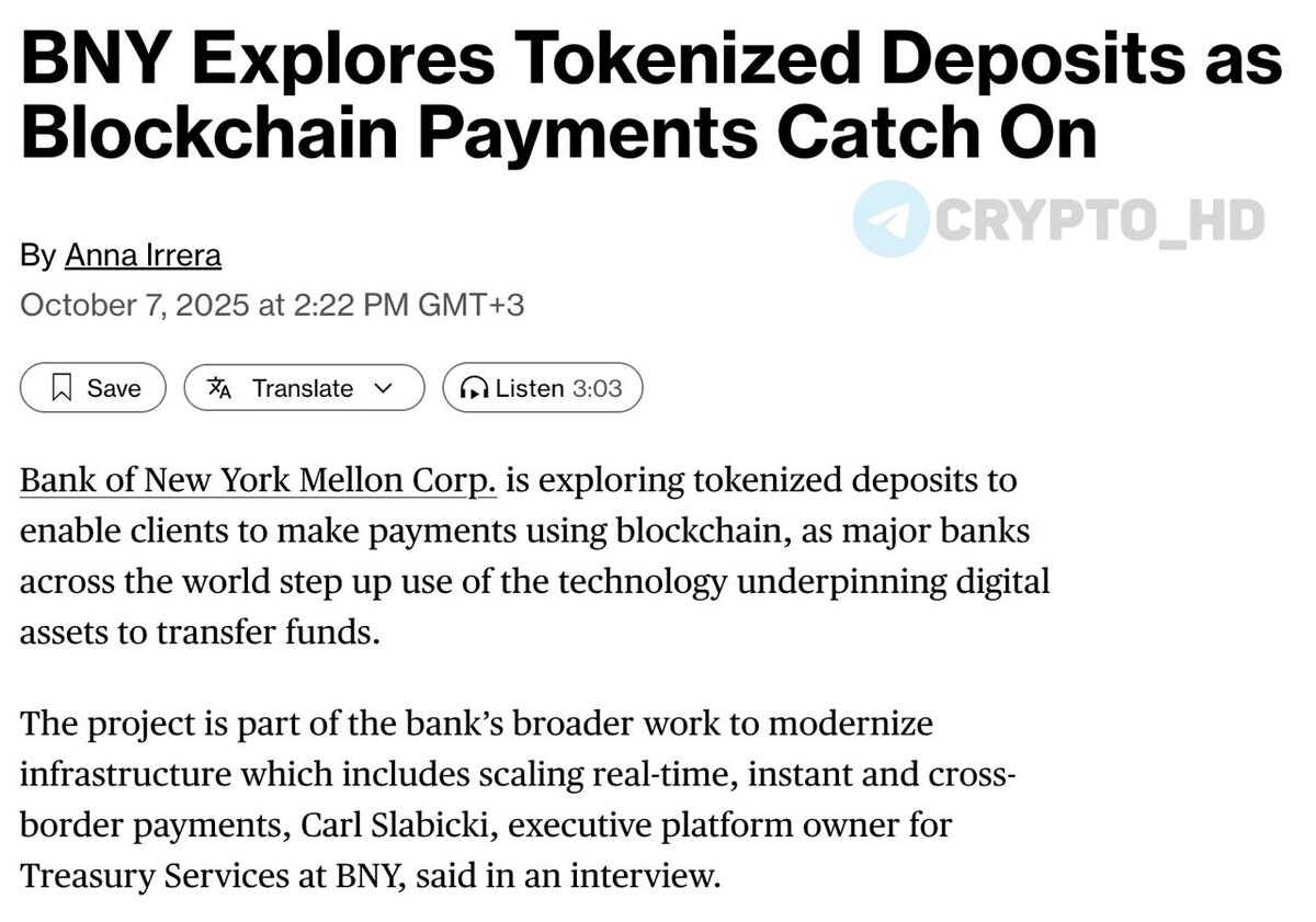 π BNY Mellon ΡΠ΅ΡΡΠΈΡΡΠ΅Ρ ΡΠΎΠΊΠ΅Π½ΠΈΠ·ΠΈΡΠΎΠ²Π°Π½Π½ΡΠ΅ Π΄Π΅ΠΏΠΎΠ·ΠΈΡΡ ΠΈ ΠΊΡΠΈΠΏΡΠΎΠΏΠ»Π°ΡΠ΅ΠΆΠΈ.
