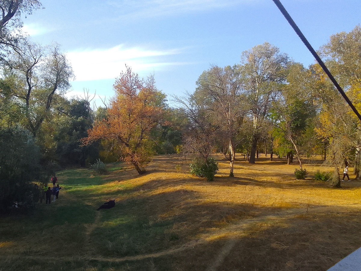 В выходные дни мы всегда стараемся выбраться на природу. Отдохнуть самим и конечно предоставить детям возможность сбросить накопившуюся за неделю энергию. В эти выходные мы отправляем в полюбившийся нашей семье для прогулок парк Горького. Парк находится недалеко на окраине города на реке Лугань и нам достаточно немного времени , чтобы побывать на природе, не выезжая далеко за пределы города. Парк Горького- излюбленное место для отдыха многих горожан в любое время года. Осенью парк необычно красив, особенно в солнечную, безветренную погоду. И горожане дружно отправляются на отдых целыми семьями и компаниями, устраивая пикник прямо на берегу реки на широкой поляне. И наша прогулка начинается с реки Лугань. Голубая вода реки, в которой отражается небо в белых облаках, покрыта золотым ковром опавших листьев. Эту картину надо видеть наяву! Уточки уже давно дружно собрались и ждут гостинцев от посетителей парка. А мы идём дальше и нас встречает избушка бабы Яги. Дети отправляются в гости к