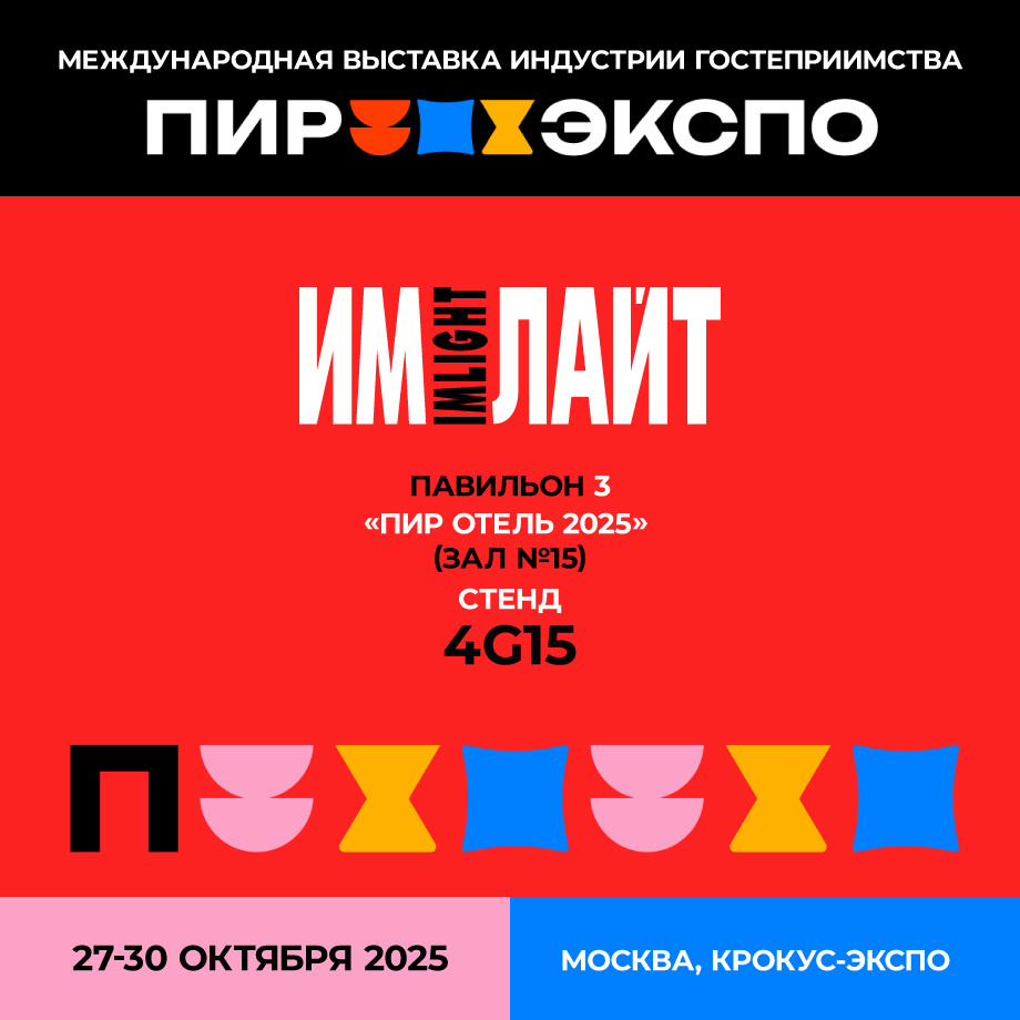 Приглашаем вас посетить стенд "Имлайт" на Международной выставке индустрии гостеприимства PIR Expo 2025, которая пройдет с 27 по 30 октября в МВЦ Крокус Экспо.