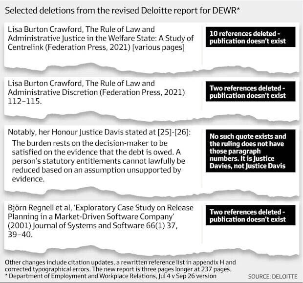 Консалтинговая Deloitte согласилась вернуть австралийскому правительству $440 тысяч за подготовку отчёта, который содержал несуществующие академические ссылки, выдуманную цитата из решения Федерального суда и неправильно написанное имя судьи.