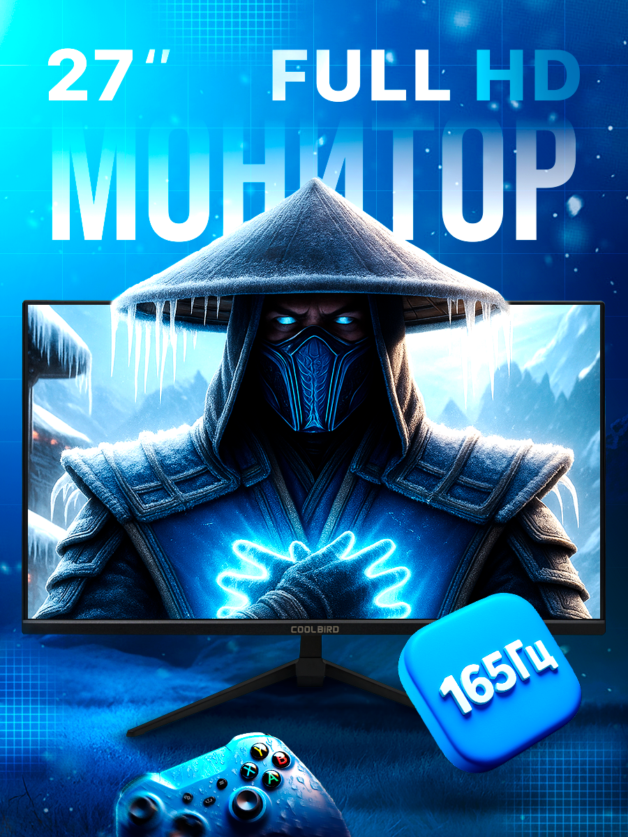 На экране — Саб-Зиро из Mortal Kombat. Почему? Потому что целевая аудитория — геймеры. Они не покупают технику — они покупают ощущение, что играют в «реальном» мире. Эмоция = вовлечение = клик. Текст — только ключевые параметры Нет лишнего: не пишем «сверхтонкий», «светодиодная подсветка», «глубокий чёрный». Это — для тех, кто уже знает, что хочет. Им важна скорость и плавность, а не «красивый корпус». Цифра 165 Гц — вынесена отдельно
