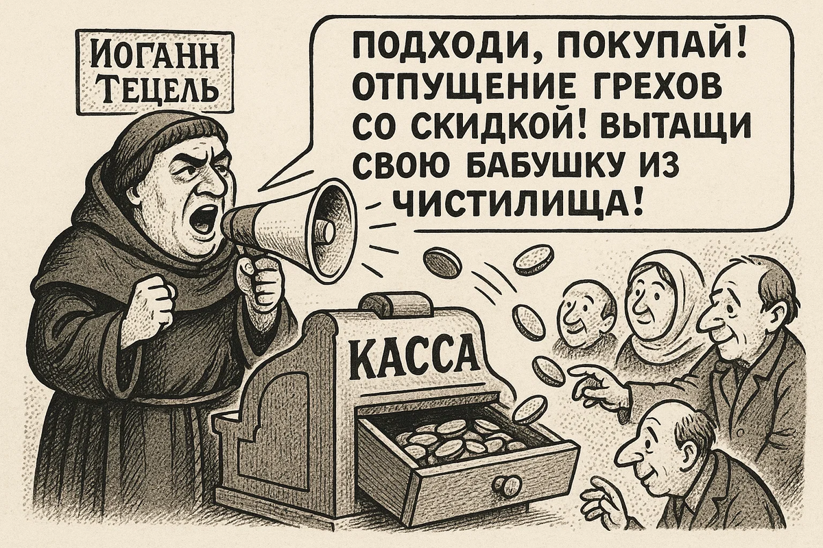 К началу XVI века католическая церковь переживала глубокий кризис. Проще говоря, она всех достала: Особенно активно индульгенции продавали в Германии, потому что там не было сильного короля, который мог бы защитить своих подданных от поборов Папы. И тут на сцену вышел немецкий монах и профессор богословия Мартин Лютер. Его окончательно взбесил монах Тецель, который кричал: "Как только монетка звякнет в кружке, душа из чистилища выпорхнет!". 31 октября 1517 года Лютер прибил к дверям церкви в городе Виттенберг свои "95 тезисов". Это был список из 95 аргументов против продажи индульгенций. По сути, это был разгромный "пост-обзор" на деятельность церкви, который благодаря книгопечатанию мгновенно стал вирусным и разлетелся по всей Германии. Папа приказал Лютеру отречься, но тот отказался и публично сжёг папское послание. На императорском суде в городе Вормс он произнёс свою знаменитую фразу: "На этом я стою и не могу иначе". Это был окончательный разрыв. Лютер предложил революционную идею