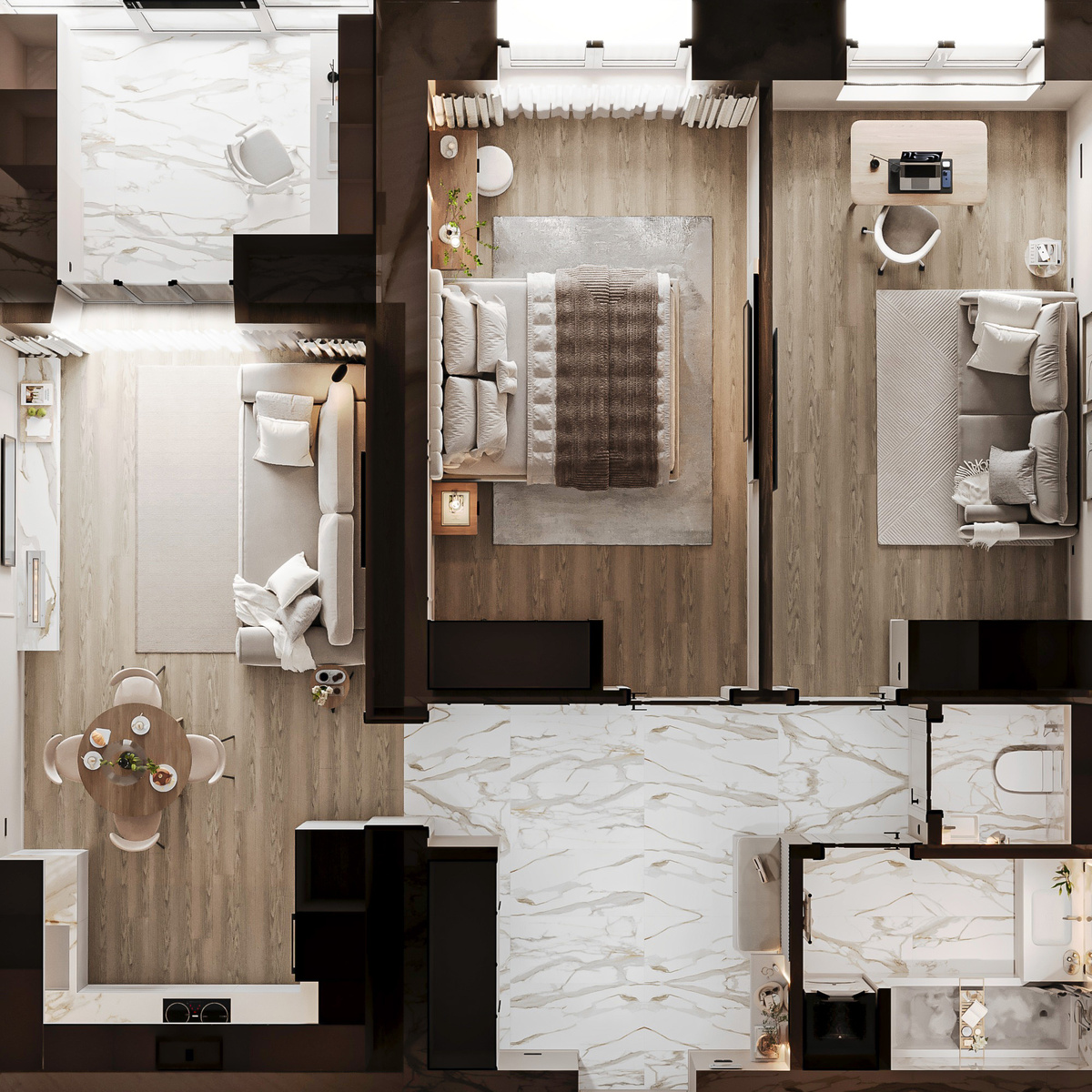 Дизайн-проект квартиры 75 м² в ЖК «Мегаполис-Парк» для девушки, которая работает из дома!