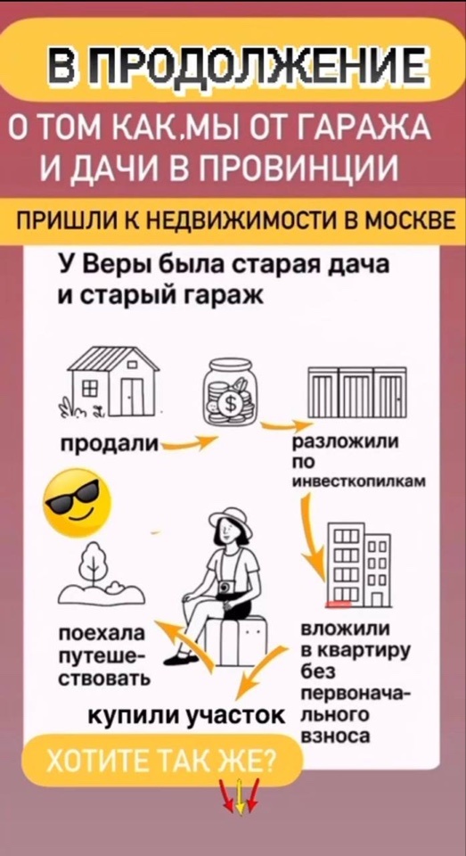 Вера, бьюти-мастер в салоне красоты, 32 года. Увидела пост в моем канале и написала мне сообщение, что хочет прийти на консультацию. А потом, по классике жанра, пропала. Возвращалась, писала, что занята, говорила, что у нее нет ресурсов, так как заработок небольшой. Пропадала снова. Я никогда не настаиваю и не давлю на клиентов, не пытаюсь “причинить им добро” - каждый свой путь выбирает сам и ответственность за свою жизнь несет тоже сам! Но одним прекрасным днём Меркурий вошел в другую фазу, а буря на Солнце закончилась. И Вера сама написала и решительно потребовала с ней встретиться. Мы созвонились в ZOOM, Вера рассказала о своих доходах и расходах, кредитах. Мы свели дебет с кредитом и поняли, что большее 100 тысяч она инвестировать не в состоянии. Но я была бы не я, если бы не попыталась выяснить все досконально. И тут оказалось, что у Веры в собственности есть гараж и дача в другом регионе, которые просто простаивают. А Вера ежегодно платит за них небольшие, но все-таки налоги.