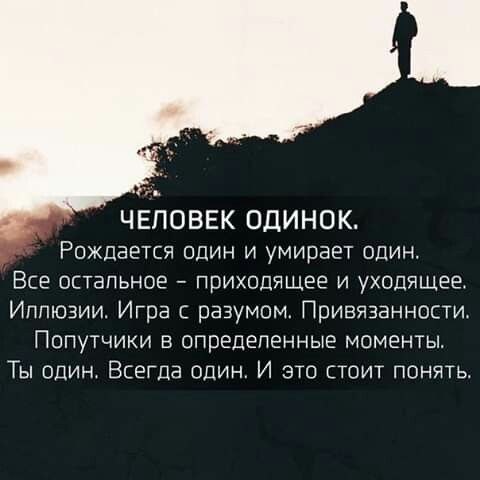У человека есть только он сам, это не про эгоизм, это про внутреннюю опору, когда человек надеется только на себя и свои силы