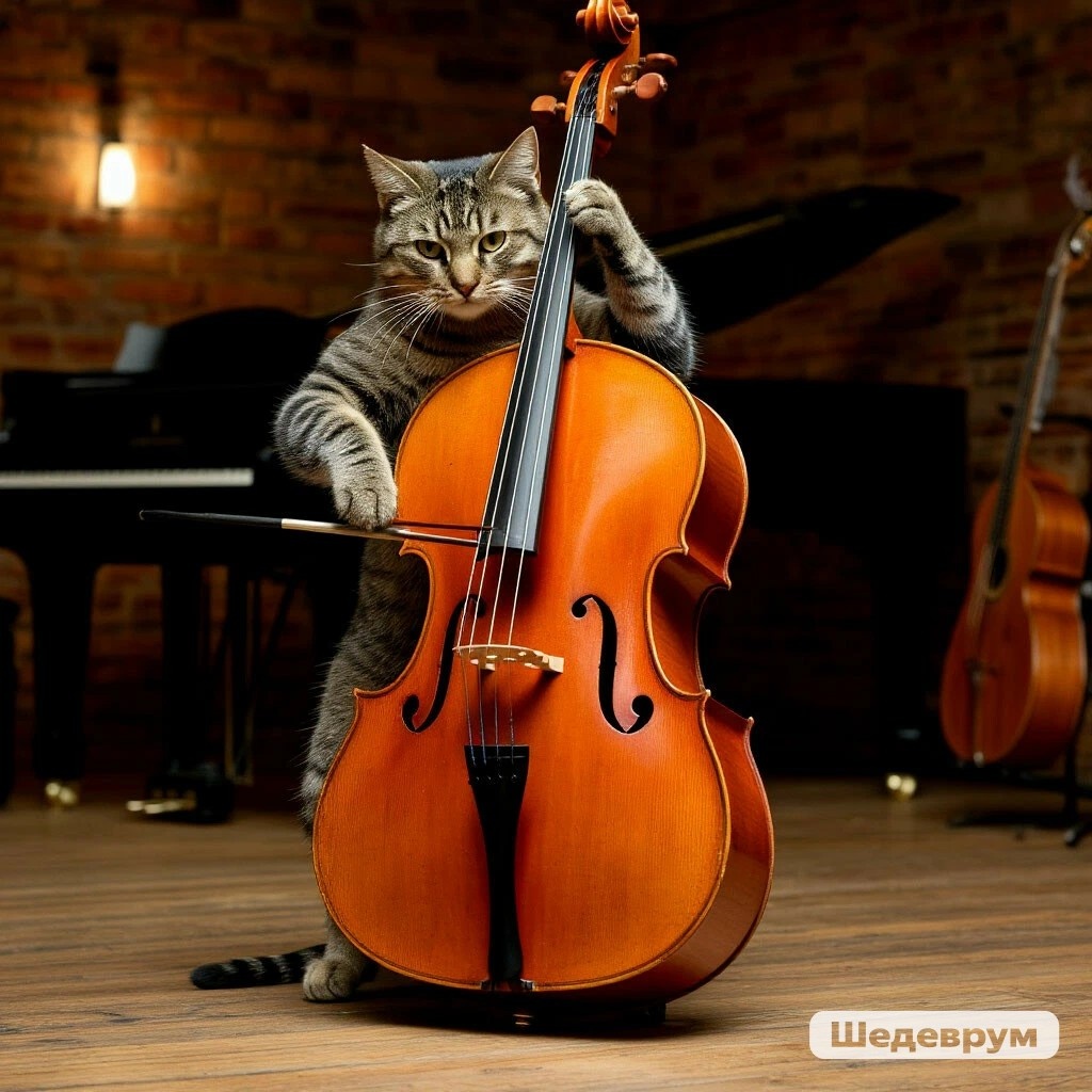 В подвале школы музыкальной Кот обнаружил контрабас… И зазвучал во тьме подвальной Полночный джаз. Другой продул мундштук умело И подкрутил свой длинный ус… И вот в ночи труба запела «Кошачий блюз» Потом тромбоны заиграли, И барабаны, и кларнет. Коты вопили, танцевали… И до утра звучал в подвале Подпольный джазовый концерт. И я подпел бы им немножко, И я бы с ними танцевал… Но я не мог пролезть в окошко, И был закрыт на ключ подвал. Андрей Усачев.