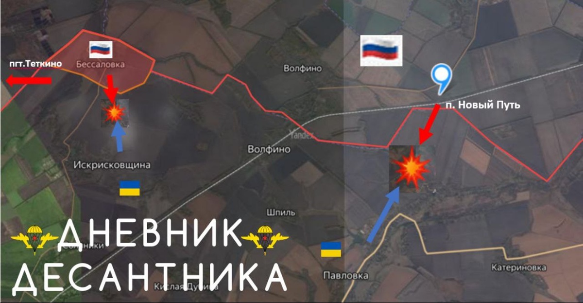 🪂 Курская область (Теткинское направление) Обстановка стабильная, но есть предпосылки к активизации противника. В районе п.Рыжевка в лесном массиве продолжаем выявлять и уничтожать позиции противника. Враг пытается атаковать в районе Бессаловки на госгранице со стороны н.п.Искрисковщина. Подразделения 24 ОШБ «Айдар» (Запрещена в РФ) периодически осуществляют попытки прохода к западной окраине Бессаловки, а также перебрасывает группы в район Волфино. Фиксируем повышение активности ВСУ у п.Новый Путь. Малыми группами противник пытается подвинуться у госграницы. Уничтожаем неонацистов на подступах к нашей территории в лесополосах, с применением FPV-дронов. ▫️ Дневник Десантника