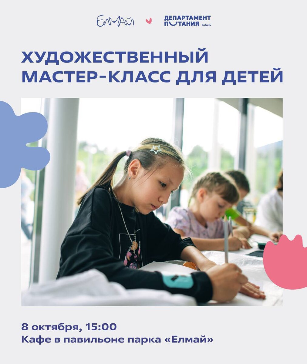 Художественный мастер-класс для детей 🗓️ 8 октября ⏰ 15:00 💸 бесплатно 📍 Детский парк «Елмай», Кафе в павильоне парк Участники создадут яркие и красочные рисунки на тему здорового питания и активного образа жизни. ➡️ РЕГИСТРАЦИЯ ⬅️ ❗️ Детская Афиша | Казань Больше информации в нашей группе, переходите