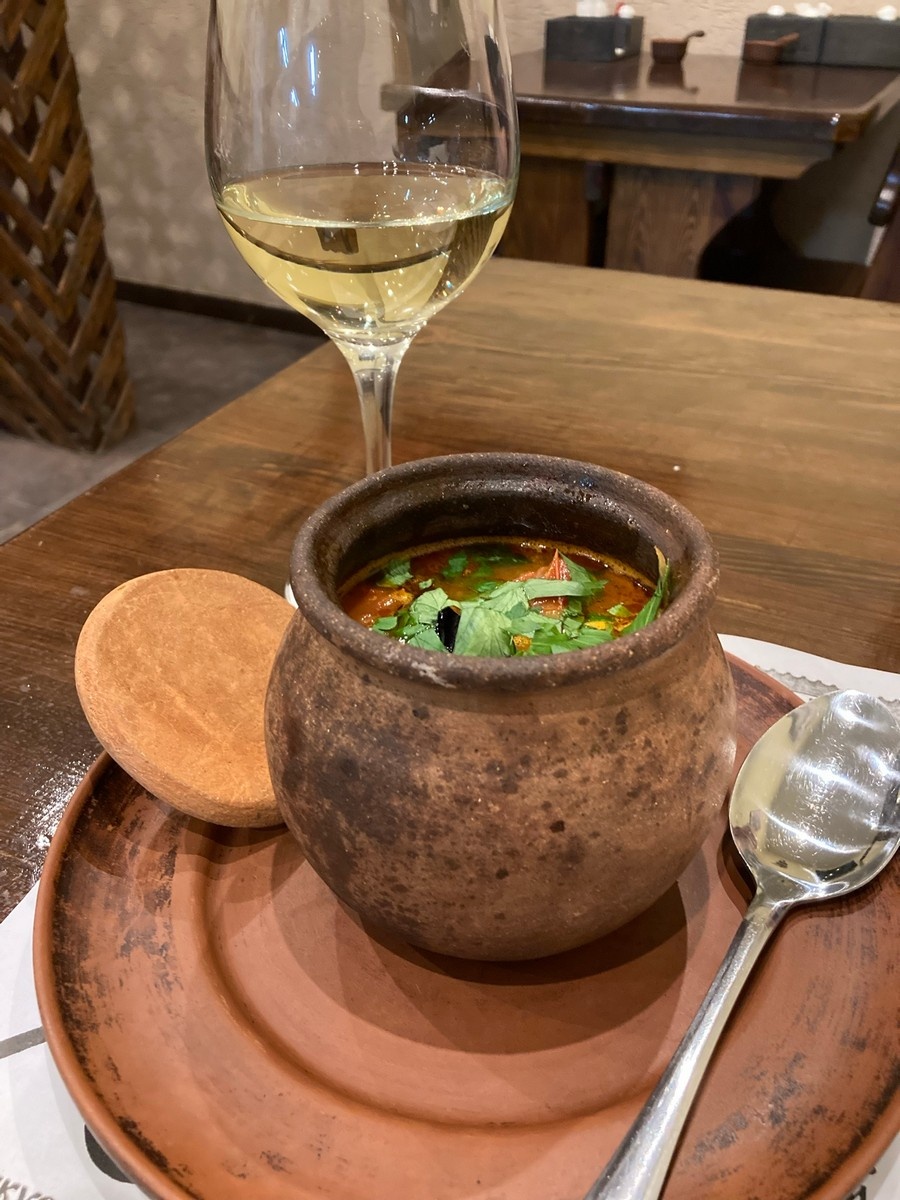 Вкусное и сытное кавказское блюдо. Мясо после томления в духовке или печи становится нежным и ароматным. Мясо промойте под проточной водой. Нарежьте на мелкие кусочки. Пережарьте на оливковом масле до румяной корочки. Добавьте при жарке соль, перец, хмели-сунели по вкусу. Все овощи помойте, очистите от плодоножек, снимите шелуху у лука, картошку почистите. Репчатый лук нарежьте мелко. Нарежьте овощи на мелкие кубики и разложите в отдельные емкости, не смешивая. На дно горшочков положите ингредиенты в следующем порядке: жареное мясо, картофель, репчатый лук, болгарский перец, кабачки, помидоры, перец чили. Посыпьте рагу хмели-сунели, солью, перцем. Влейте пассату, распределив равномерно на 6 горшочков. Положите по небольшому кусочку масла и добавьте примерно по 100 мл. воды. Духовку разогрейте до 160-180°С. Накройте горшочки крышками и поставьте в духовку примерно на 2 часа. Пока готовятся горшочки, натрите сыр на крупной терке. Через полтора часа достаньте горшочки и щедро посыпьте сыр