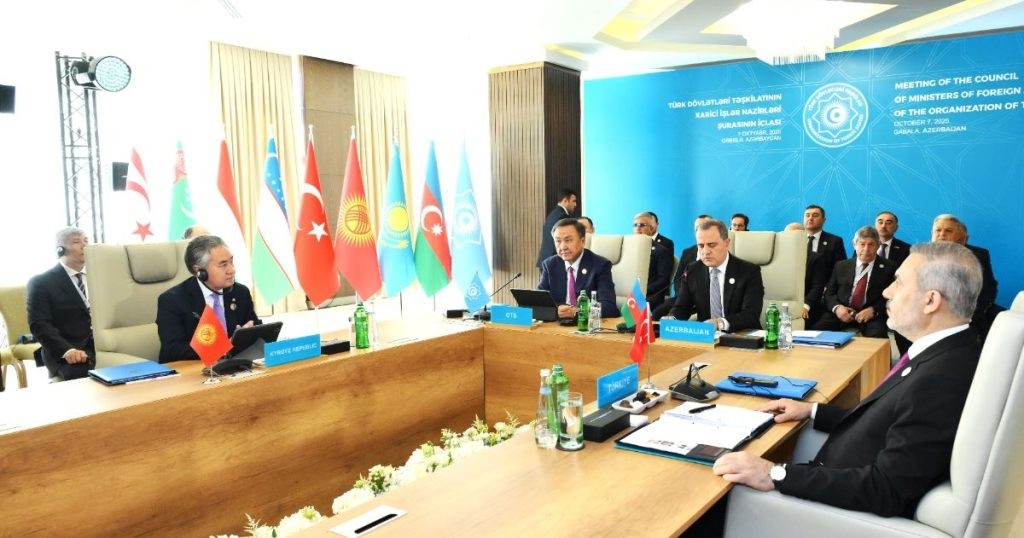 Кыргызстандын тышкы иштер министри Жээнбек Кулубаев 2025-жылдын 7-октябрында Азербайжандын Габала шаарында өткөн Түрк мамлекеттер уюмунун Тышкы иштер министрлер кеңешинин жыйынына катышты. Жыйындын негизги темасы "Регионалдык тынчтык жана коопсуздук" болду. Кулубаев кыргыз төрагалыгынын жыйынтыктарын чыгарып, негизги жетишкендиктерди белгиледи жана Кыргызстандын уюмдагы кызматташтыкты тереңдетүүгө умтулушун баса белгиледи. Жыйындын жыйынтыгында Габала декларациясы сыяктуу бир катар документтер бекитилди. 🇰🇬 Кыргыз Республикасынын тышкы иштер министри Жээнбек Кулубаев 2025-жылдын 7-октябрында Азербайжандын Габала шаарында өткөн Түрк мамлекеттер уюмунун (ТМУ) Тышкы иштер министрлер кеңешинин кезектеги жыйынына катышты. 🤝 Жыйындын негизги темасы “Регионалдык тынчтык жана коопсуздук” болуп, анда мүчө мамлекеттердин, байкоочу өлкөлөрдүн жана түрк кызматташтык уюмдарынын тышкы иштер министрлери түрк аймагында туруктуулукту, тынчтыкты жана туруктуу өнүгүүнү камсыздоо боюнча актуалдуу масел