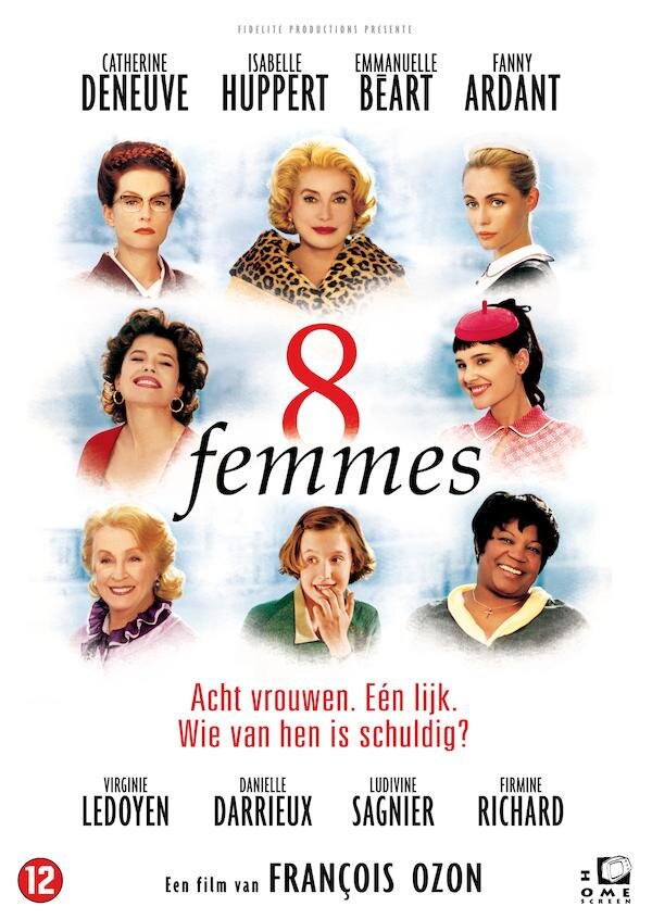 Франсуа Озон собрал в этом фильме самый цвет французского кино. Причём, цвет (цветы) в прямом смысле этого слова. Восемь женщин - восемь блистательных артисток - одна лучше другой. Катрин Денёв, Фанни Ардан, Изабель Юппер, Эмануэль Беар, Людвиг Санье... И даже долгожительница французского синематографа Даниэль Дарье в роли эксцентричной бабушки-пьяницы. Сценарий основан на классической пьесе Робера Томá. Крепкий, остросюжетный детектив с неожиданной развязкой, не даст заскучать ни на секунду. Пьеса была написана ещё в 50-х и мьсе Озон хорошо сделал, что сохранил колорит "ретро" в картине. Ещё одна "фишка" - это музыкальные номера. Когда я впервые смотрел этот фильм ещё на вэхаэсовской кассете, для меня полной неожиданностью было, как героини вдруг, будто-бы ни к селу ни к городу начинают петь. Потом понимаешь, что это и есть особый шарм стиля. Создатели фильма решили немного "улучшить" не совсем совершённый тест пьесы и добавили туда неизбежной розовой тематики. Что, впрочем, выгляд