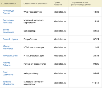 За первые шесть месяцев реализации проекта команда потратила 538 часов чистого рабочего времени (без учета участия руководителя проекта и копирайтеров). Всего за этот период было выполнено более 250 задач.