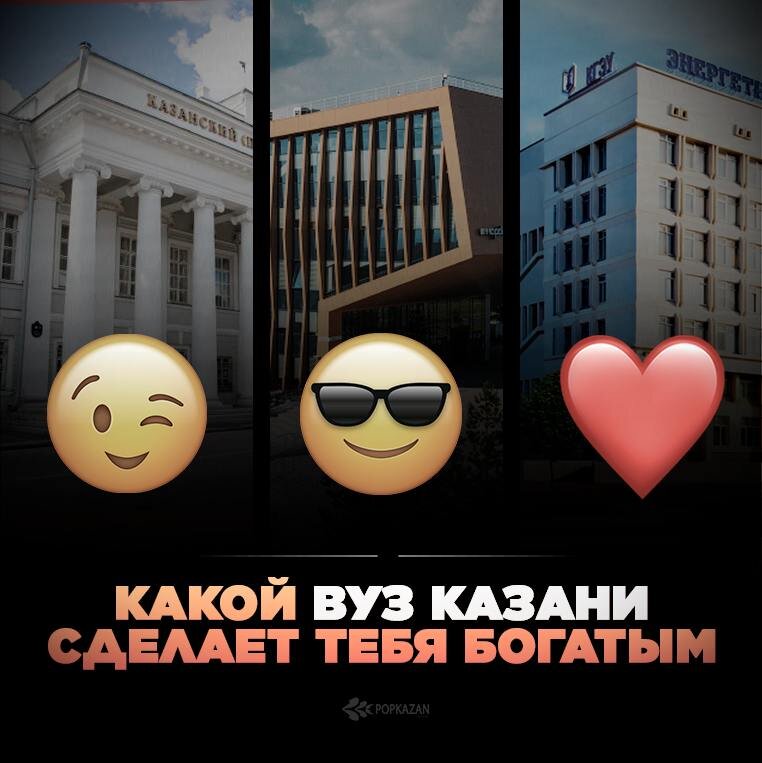 🤑 Чтобы стать богатым казанцем, важно изначально понять, какой ВУЗ поможет получить высокооплачиваемую должность Как вы думаете, какой ВУЗ может бустануть вас по доходу? 😉 - КФУ 😎 - ИННОПОЛИС ❤️ - КГЭУ 😁 Наш telegram-bot про Казань