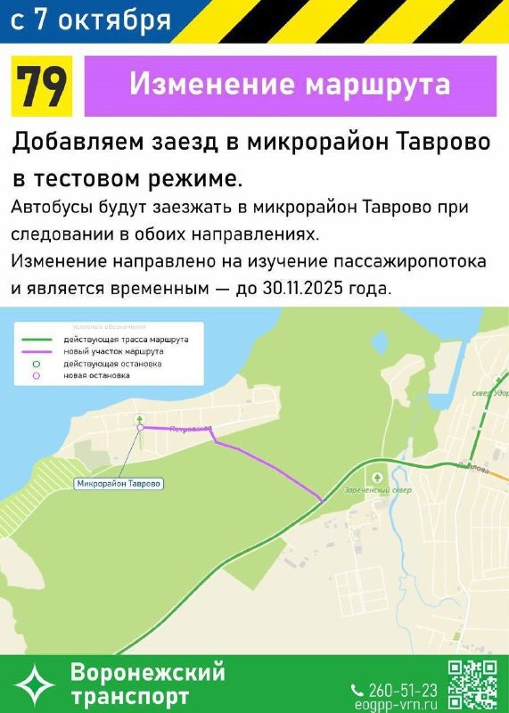 Маршрут автобуса 79 в Воронеже изменён. Теперь он включает остановку в Таврово.