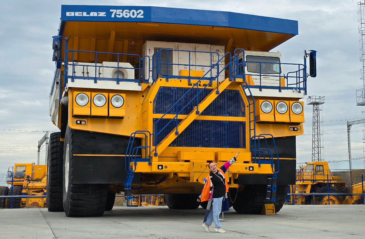 Ну, а дальше началось самое интересное - нас привезли на выставочную площадку сверхтяжелых машин — здесь находятся легендарные самосвалы, включая знаменитый БелАЗ-75710, высота которого сравнима с двухэтажным домом.
