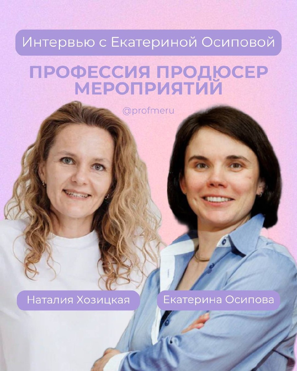 #интервью с продюсером мероприятий Мы продолжаем серию интервью с профессионалами об их работе. В новом выпуск у нас в гостях Екатерина Осипова, продюсер деловых мероприятий издательского дома «Коммерсантъ». Екатерина знает все о мероприятиях разного масштаба, она 15 лет занимается организацией событий: от детских праздников до международных спортивных турниров, от конференций в Москве до сессий на международных выставках, от камерных встреч для 10 гостей до масштабных мероприятий на 700+ человек. ➡️ Карьера Екатерины в организации мероприятий началась с собственных спортивных увлечений, а превратилась в профессиональный путь до управления командой в крупнейшем медиахолдинге страны. Это история о том, как любовь к спорту привела к любимой профессии. Про профессию мы успели обсудить вот что: ⚪️В каких организациях может работать продюсер мероприятий и какие обязанности выполняет? ⚪️Какой продюсер поможет организовать международный турнир? Почему цвет ковролина и марка воды имеет знач