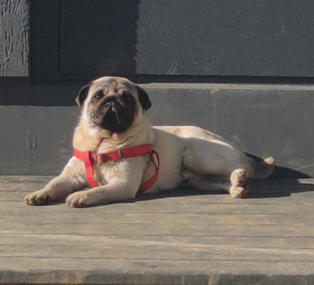 В посёлке Становая (вторая очередь) убежал мопс, зовут Арчи, в красной шлейке, как на фото